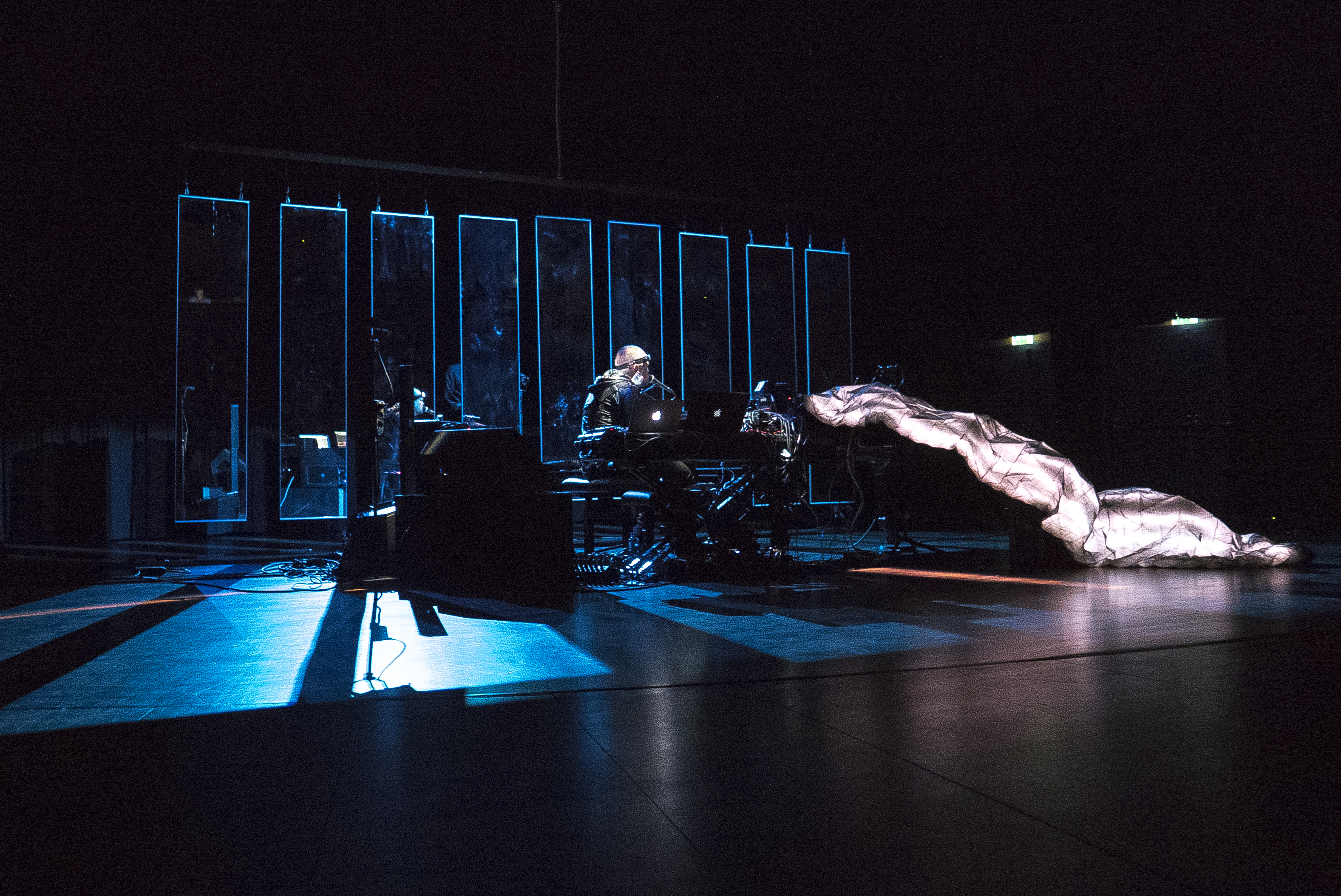I take a trip up town, to the Norges Musikkhøgskole (Norweigan College Of Music) to investigate Morten Qvenild. This show marks the end of his doctorate, and for many, it seems an emotional last show. The show is staggeringly different from Lloyd’s. Morten is alone on stage, surrounded by light beams and computers, all centered round a baby grand piano. One big hand taps away at the piano, while another fiddles with electronics. The concert is eccentric, wacky, and like nothing I could have expected. In terms of sound, the closest reference I could make would be to say much of it sounded like the universe in slow deconstruction. But there is something far more interesting to be seen in Morten Qvenild.