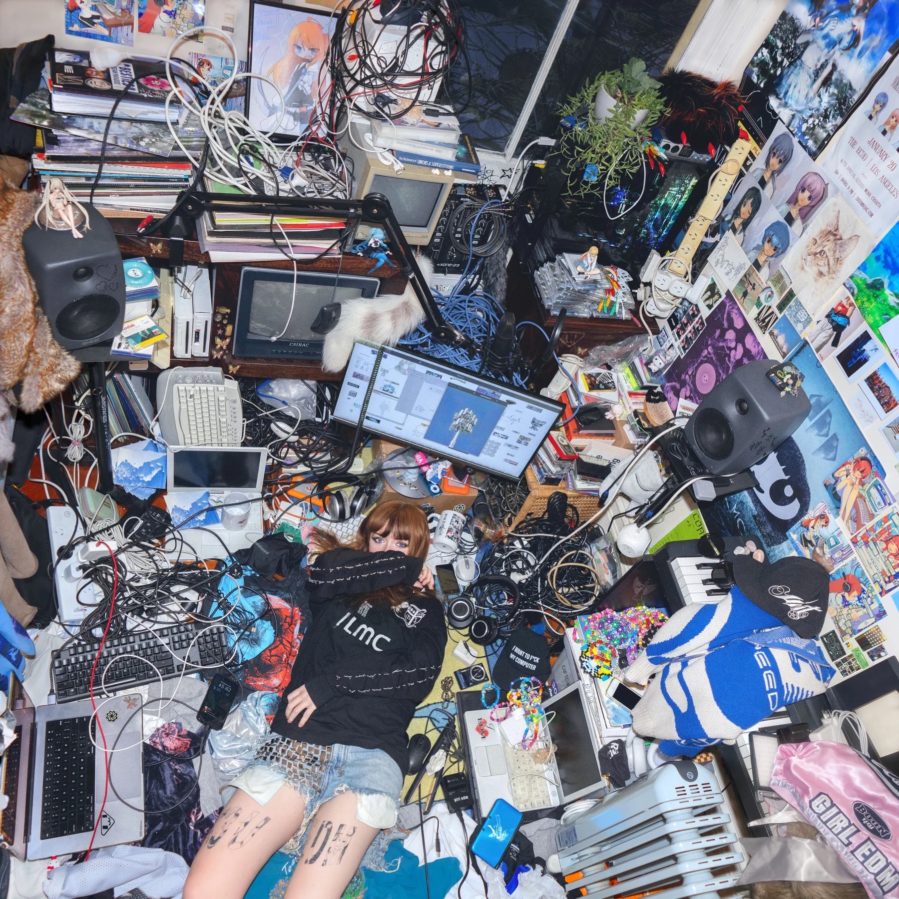 I Love My Computer can unravel like a fairytale of self-discovery (“Fell into the screen like a star / As a girl found a world there and gave it my heart”), the story soon curdles. “Infohazard”, a dislocating freefall of a trance track, recalls when she witnessed the beheading of a man online when she was a teenager. Even in its glazed simplicity, it gestures toward the lawlessness of the internet which children numbly accepted. Perhaps even more sinister is the mind-melting dubstep love letter “CSIRAC”, where a voice – barely perceptible in the deluge of sound – whispers, “You are the girl, the one I want / I would never do anything to bring you harm.” She leads us into these unnerving corners of the internet, the weird chatrooms, catfishes and strangers, without problematising them. They simply are, and these truths are the brushstrokes that complete the portrait of the chronically online teenager.