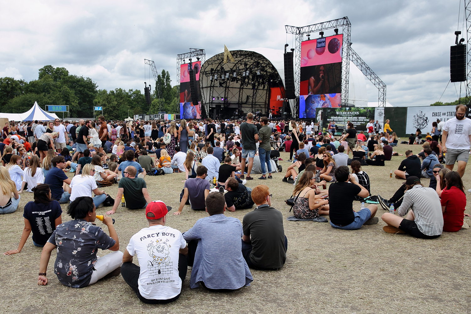 A lady at the ticket exchange sings to us. Security check our bags and wave us through rather too jauntily. The bar staff are damn near hysterical when they take my £6.50 for a can of cider. Even the rain doesn’t dampen spirits as we shelter beneath a handy gazebo, listening to a guy tell his friend about the ear wax removal he’s just had done in an on-site hearology clinic: "I dunno mate - it just feels weird."