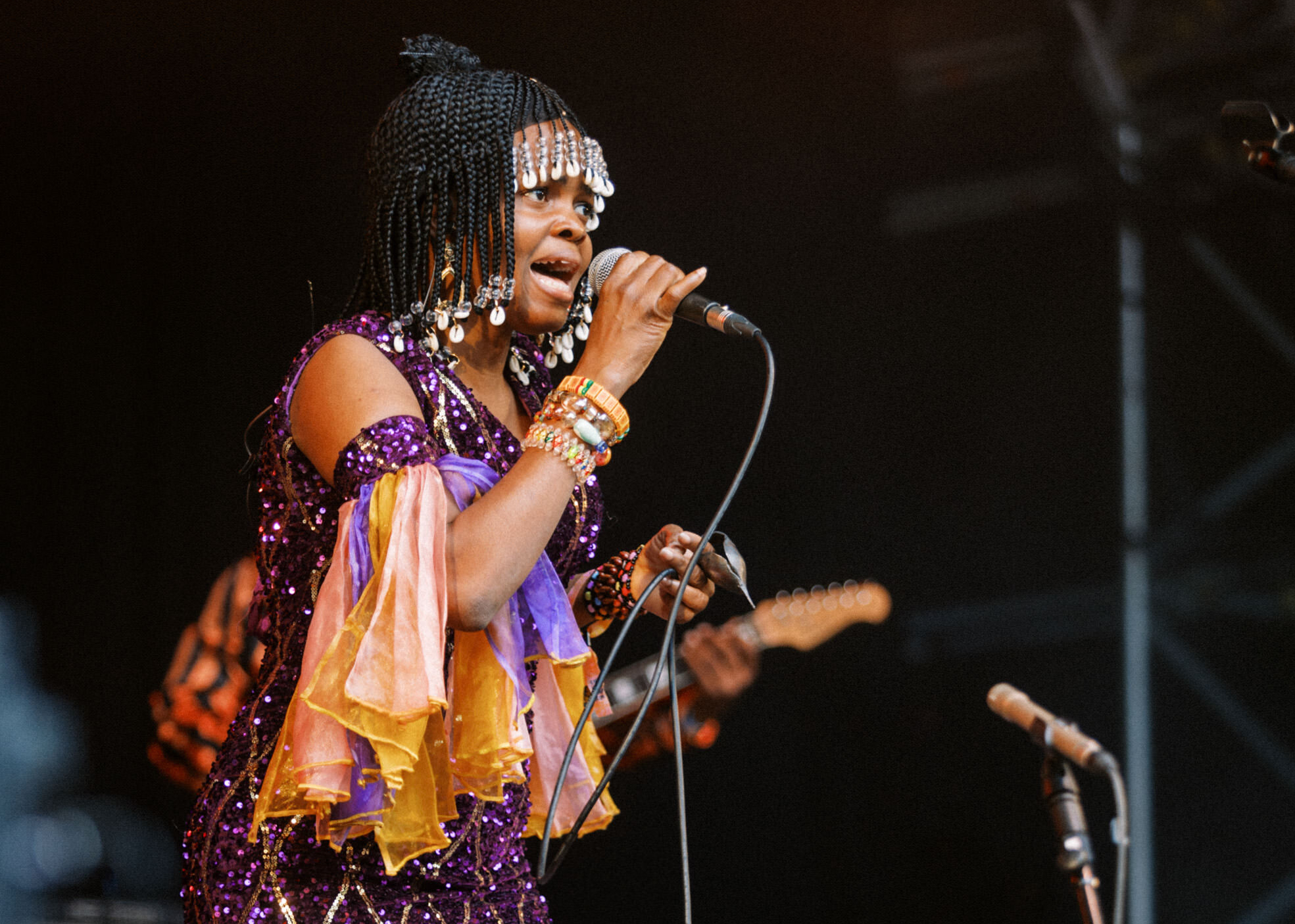 Despite punters bouncing back from a weekend of partying with respectable vitality, after the darkened skies unleash a downpour, the afternoon mood is feeling a touch dispirited. But if there’s one act we can trust to reinvigorate us all, it’s the Florence Adooni Band. Taking to the Garden Stage - the men suited and booted in 70s-reminiscent get-up and the leading ladies sparkling in purple sequin dresses - Florence Adooni’s groove-laden Ghanaian High Life provides a well-needed dose of vibrant energy to the dampened day, her hooky melodies and rhythmic tunes proving impossible not to dance to. A significant force in African contemporary music, she interacts with the crowd with a cheeky sense of humour and a truly appreciative air, her band members jamming out solos in turn that warrant endless rounds of applause.