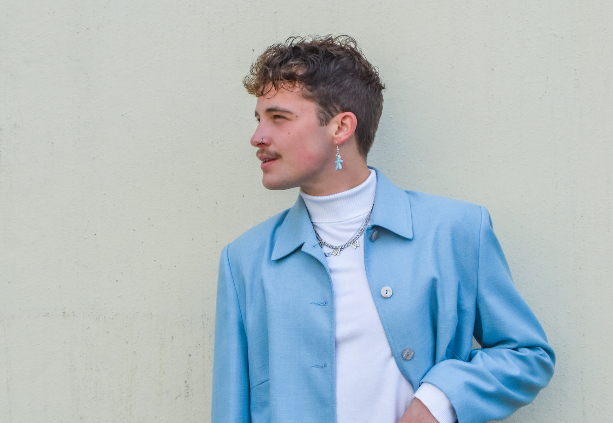 “I was singing it around the house and my mum and stepdad would ask ‘what’s that?’ and that’s when I realised they were connecting with something in it and I sent a demo to my producer as we were working remotely and he said ‘yeah, I just kinda cried’. That’s when I realised it had to be the first single,” he explains. “‘Growing Pains’ and one other [song] was specifically about being trans and I wanted something that spoke directly to my community and said, ‘hey, I’m here and here's something for you and something we can share’... The one thing the queer community can really do, especially in the UK, is really connect with the community and watch a load of people get behind you because they want to support queer art.”