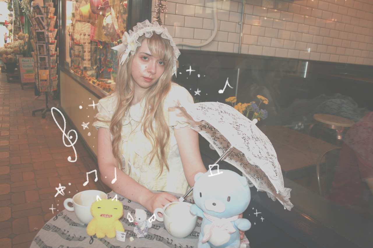 Her artist name comes from a Tesco book called “Fashion Angels.” Rainbow explains that you could draw and create the girl exactly as you wanted it, down to the hair. “I named it Clark, and I’ve just carried it with me ever since” she says. When performing live at nitecawr's Winter Ball, she was adorned in white full doll attire with a parasol to match. “There’s a game called Star Boutique, and I loved the babydoll fashion, I’ve never seen it in person” she says.