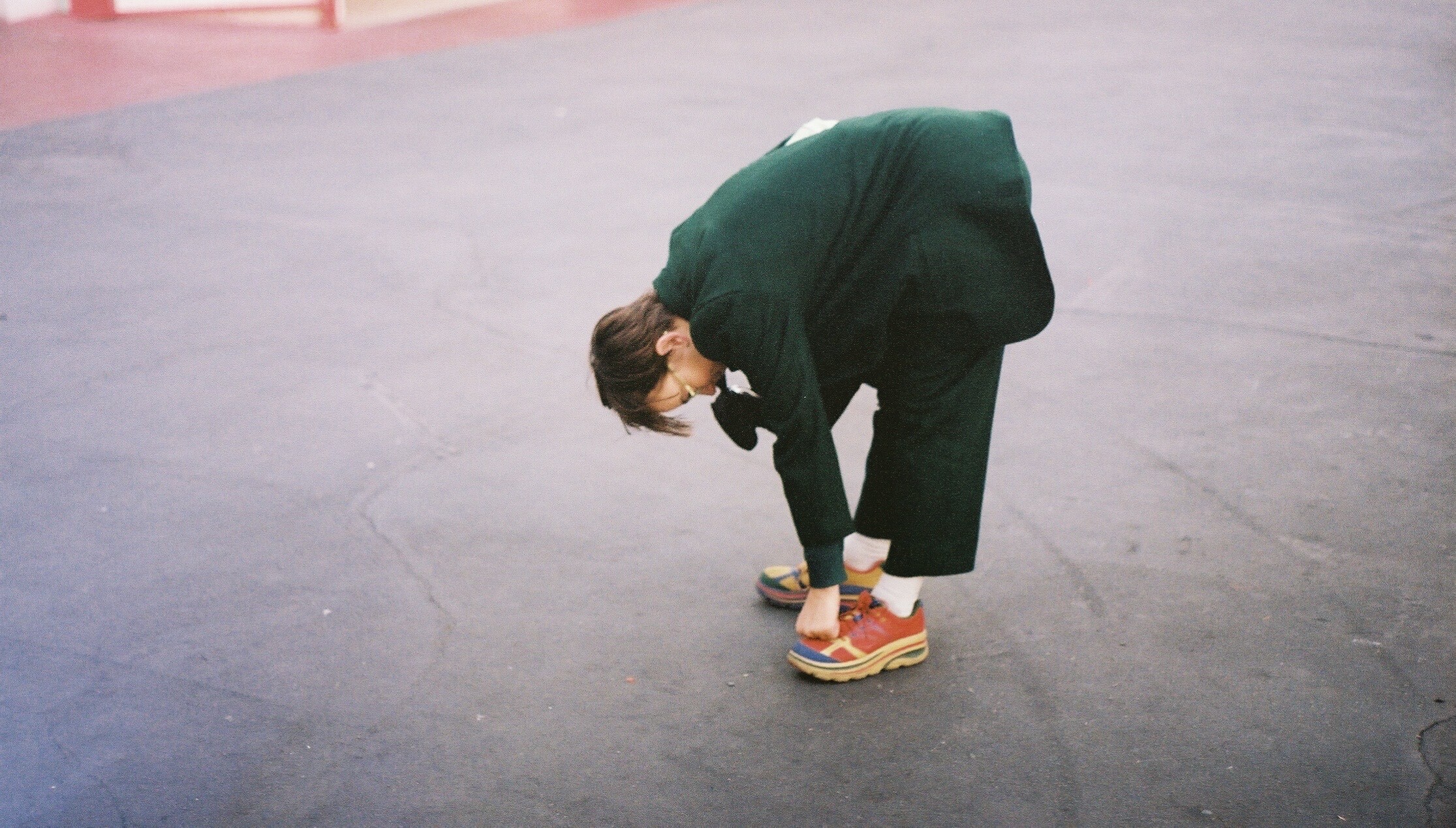 Serendipitous interaction inspired the album’s title, too, which arose when Tullgren was staying at a friend’s house in Vermont and playing a game they remember from high school. “You sort of instruct someone to draw a face, like: ‘Okay, draw a swoop, now draw this.’ We were each doing it, and part of the instruction of drawing the face was: ‘Now decide which way the eyes are looking,’” Tullgren explains. “That phrase really, really stuck with me.” It was only later that Tullgren realised the phrase (and the cover photograph of Tullgren with their dog Romeo) inadvertently harkened back to their pre-LA stomping ground of Queens, New York.