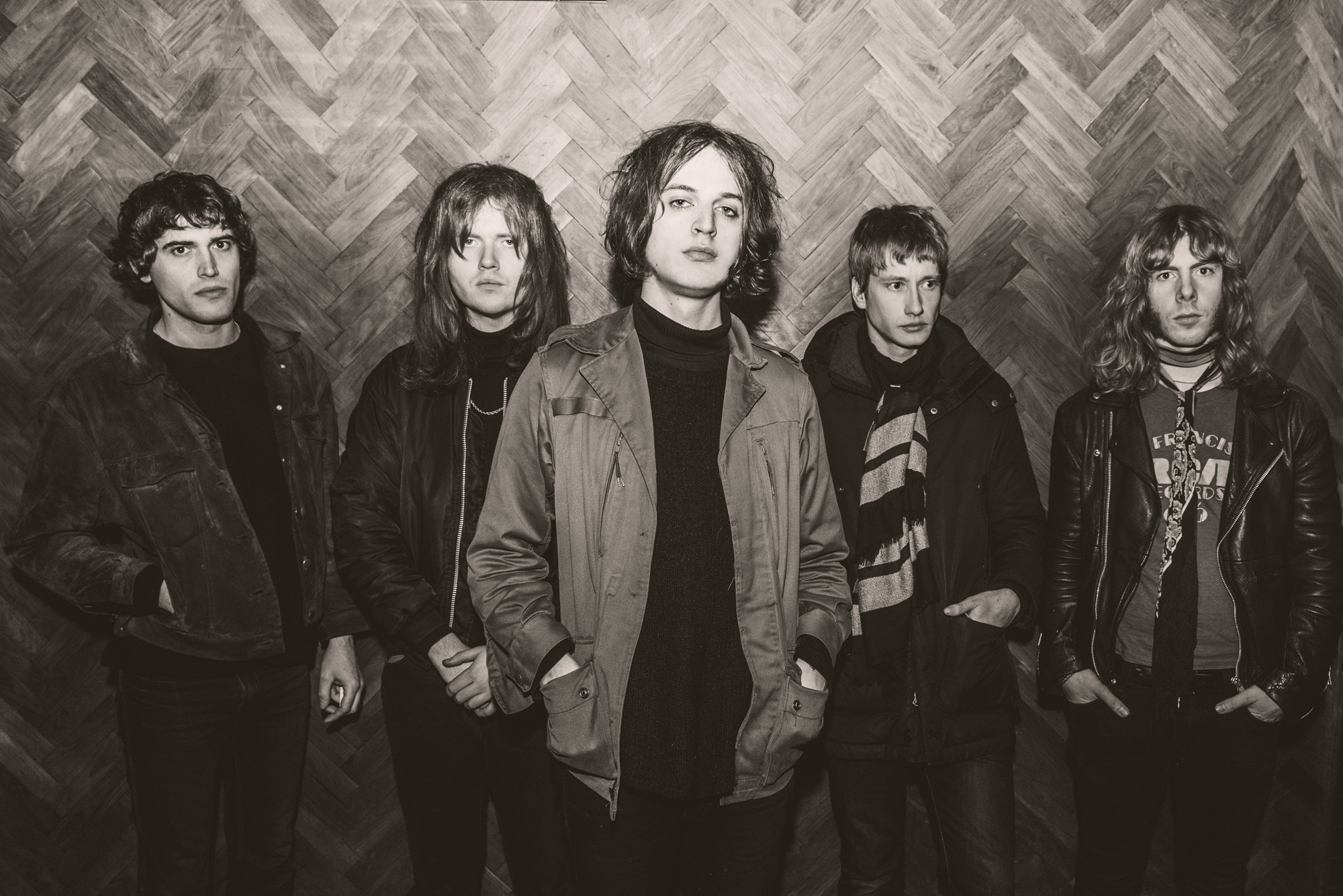 We meet the five of them: Barron, singer and guitarist Tom Dougall, guitarist Dominic O’Dair, drummer Charlie Salvidge and new keyboard player Max Oscarnold in a café to talk about Clear Shot, the musical and personal context that influenced it, and how they feel about being bracketed by genres, specifically psychedelia.