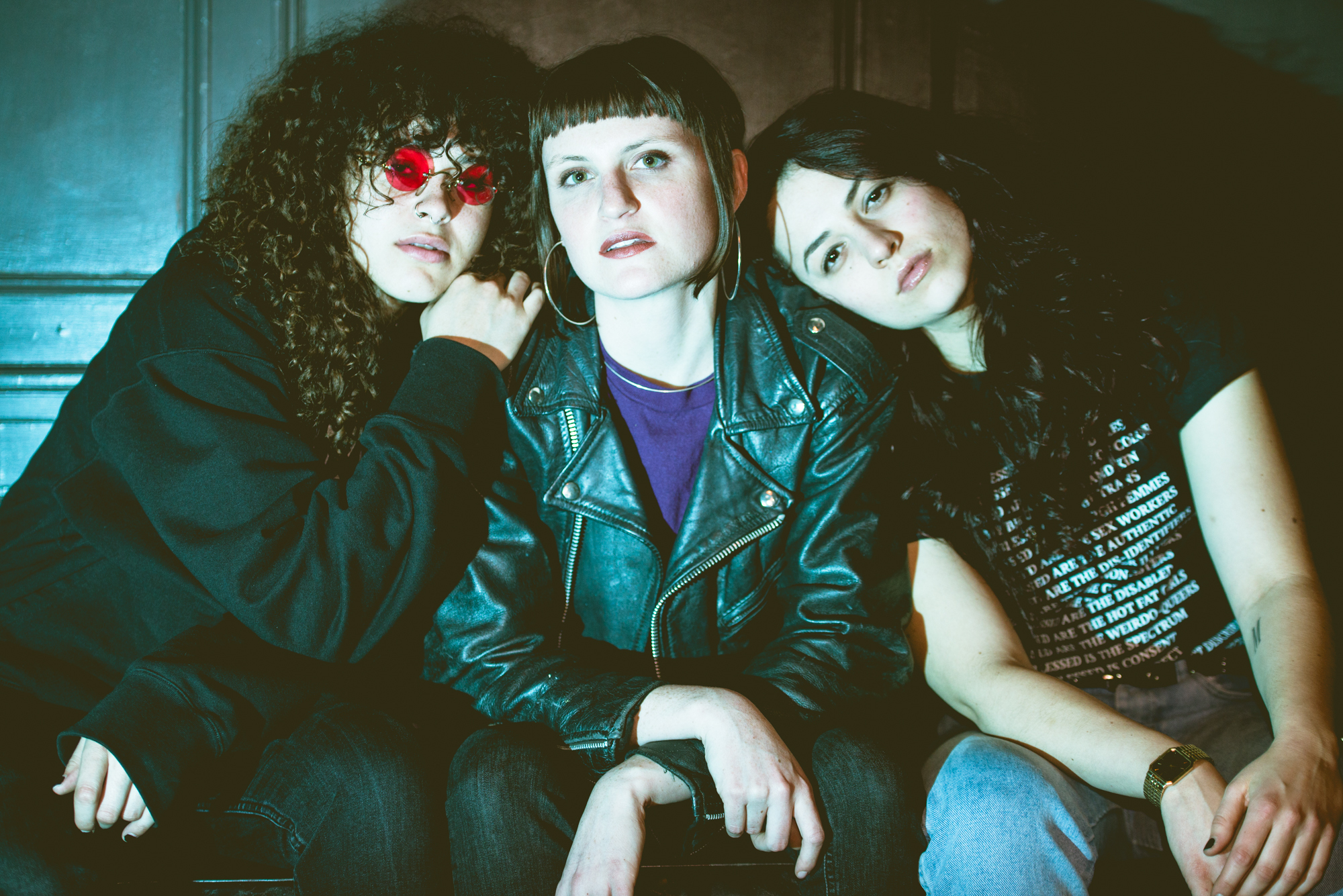 “I think the personal as political is the central theme of our band,” producer and guitarist Naomi McPherson says. She, lead singer Katie Gavin, and guitarist Josette Maskin are sprawled out over a couch, giving the impression of being more like family members or childhood friends than a trained professional unit. It’s because of their intense friendship that delving into past trauma, moulding it into powerfully anguished lyrics, and belting it out onstage is routine for them. They don’t drink before shows, according to their Twitter, and never seem to dismiss any gig as a work obligation. Instead, it’s a uniquely personal and riling performance art of sorts; one that leaves the audience transfixed and so vulnerable that reaching out for connection to the person next to you seems less daunting than in the rest of life.