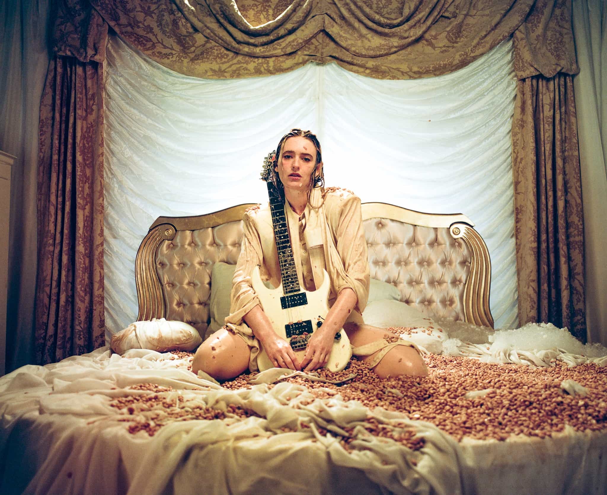 “I'd recently watched the explosive and unhinged foam and bean scene from the 1975 rock opera by The Who called Tommy and instantly wanted to recreate it,” says Hollowell. “The film is absolutely insane (you can tell everyone was on a lot of acid) and visually it's an absolute dream. 'TV' was the perfect song to pay homage to this scene and I quite literally couldn't let go of the idea. For months I told people 'I want to shoot this bean sequence' and I'd show them the reference. Everyone's general reaction was the same; shock and disgust, which I loved.”