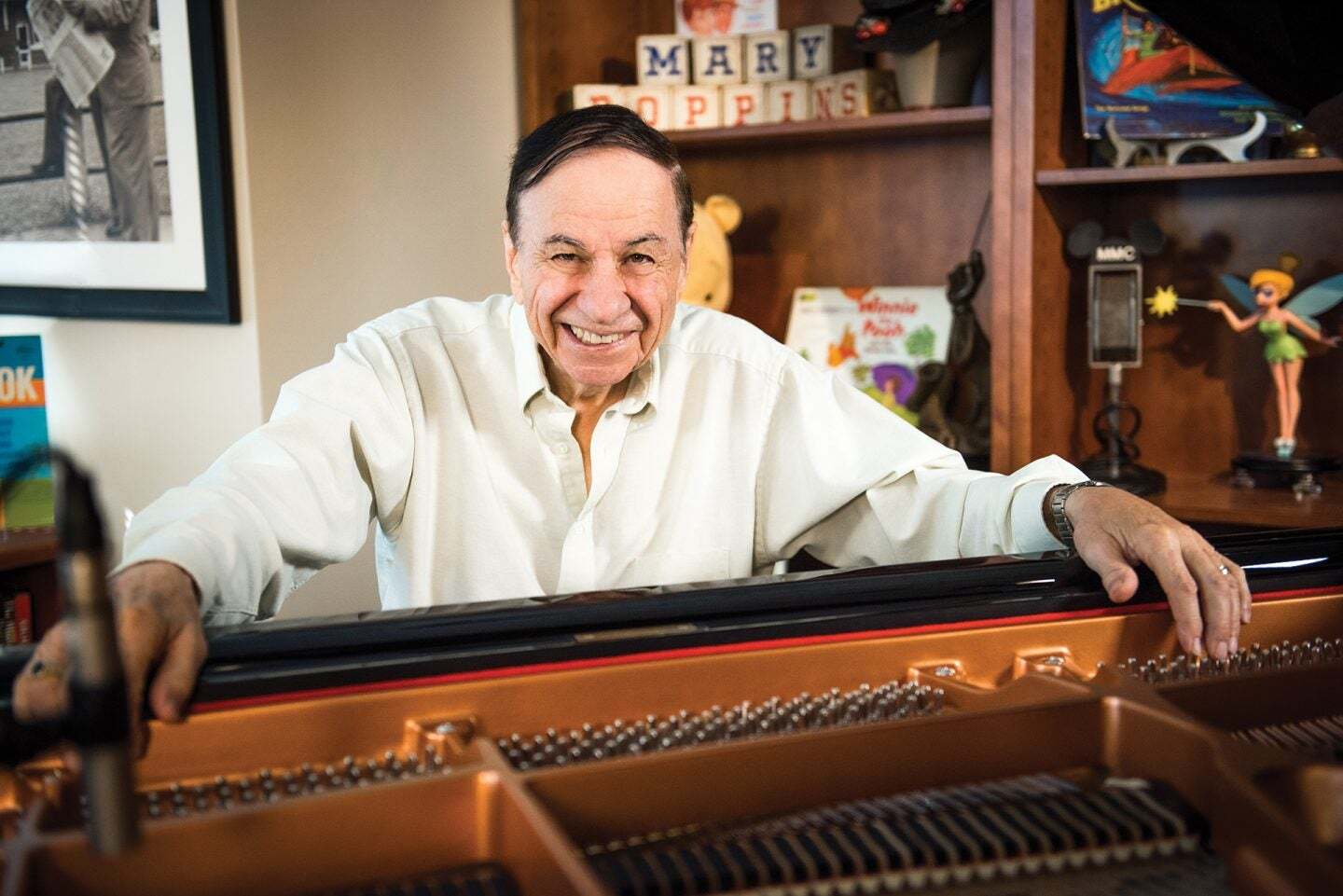 Last year, Disney shared a video of Sherman returning to Walt Disney’s office to play “Feed the Birds” for ‘Once Upon a Studio.’