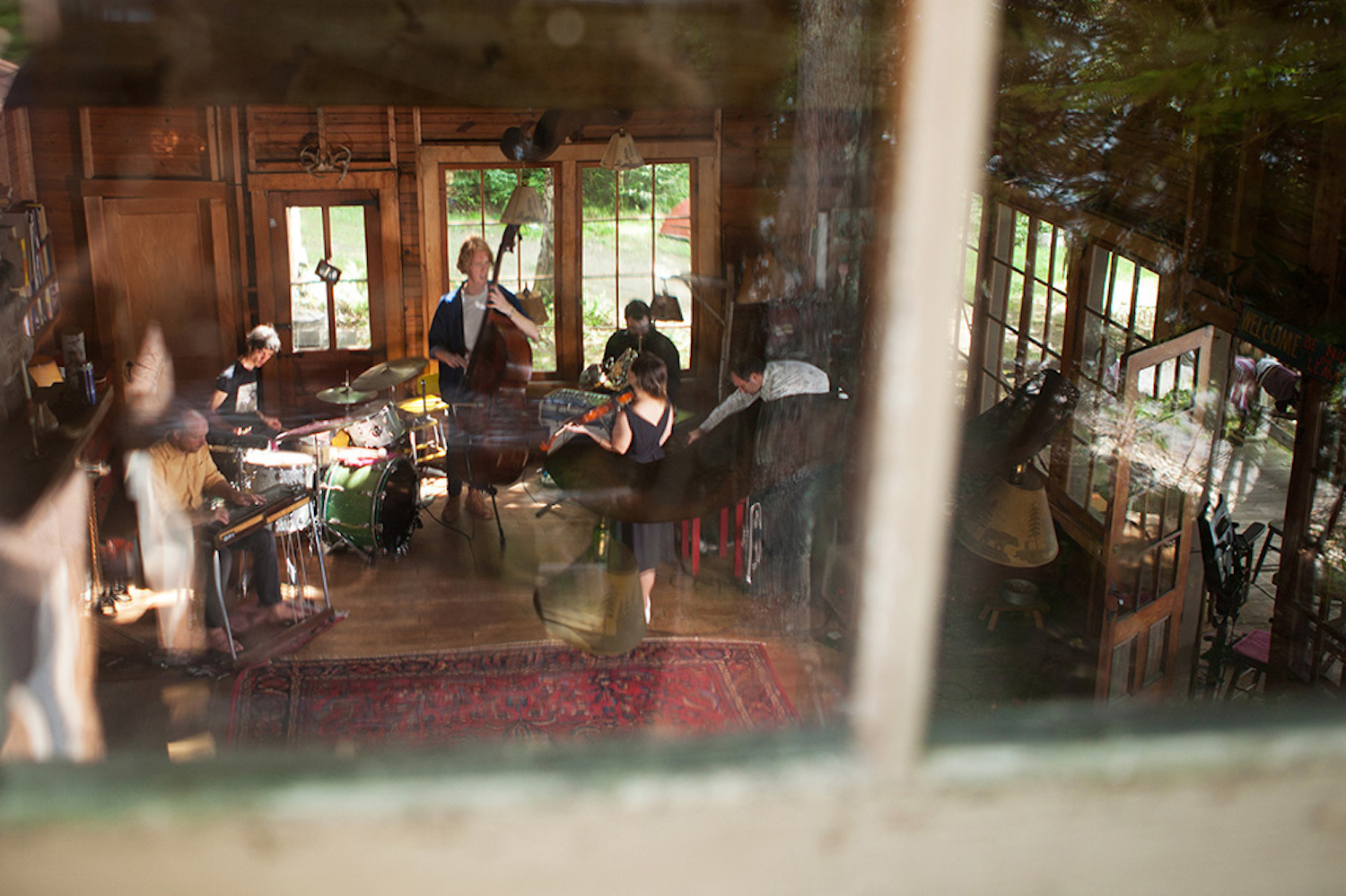 Neufeld says, "If you sliced away the front wall of the house and looked in, you’d see the horn section - with so many different things going on - down on the first floor of what would normally be the living/dining room, and it was full chaos with tables and tables of kalimbas and harmonicas and synthesizers and horns. Then you travel up a floor, and there’s me and Richie in an empty, warm sounding wooden bedroom. Mike was on pedal steel in the bathroom, on the same floor as us. And then up the stairs, through the ceiling and in the attic, was Stefan, alone on drums. It’s a big piece of land, and if you went outside to take a break, you’d look over and hear all of this crazy shit coming out of all the different floors, and it filled this valley, and there were lots of rocks so the sound would bounce around. It was spooky and glorious."