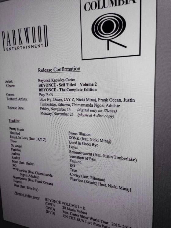 The new release will also contain a live DVD with perfmormances from the "Mrs Carter" World Tour, and a mini-copy of the official 2015 Beyoncé calendar.