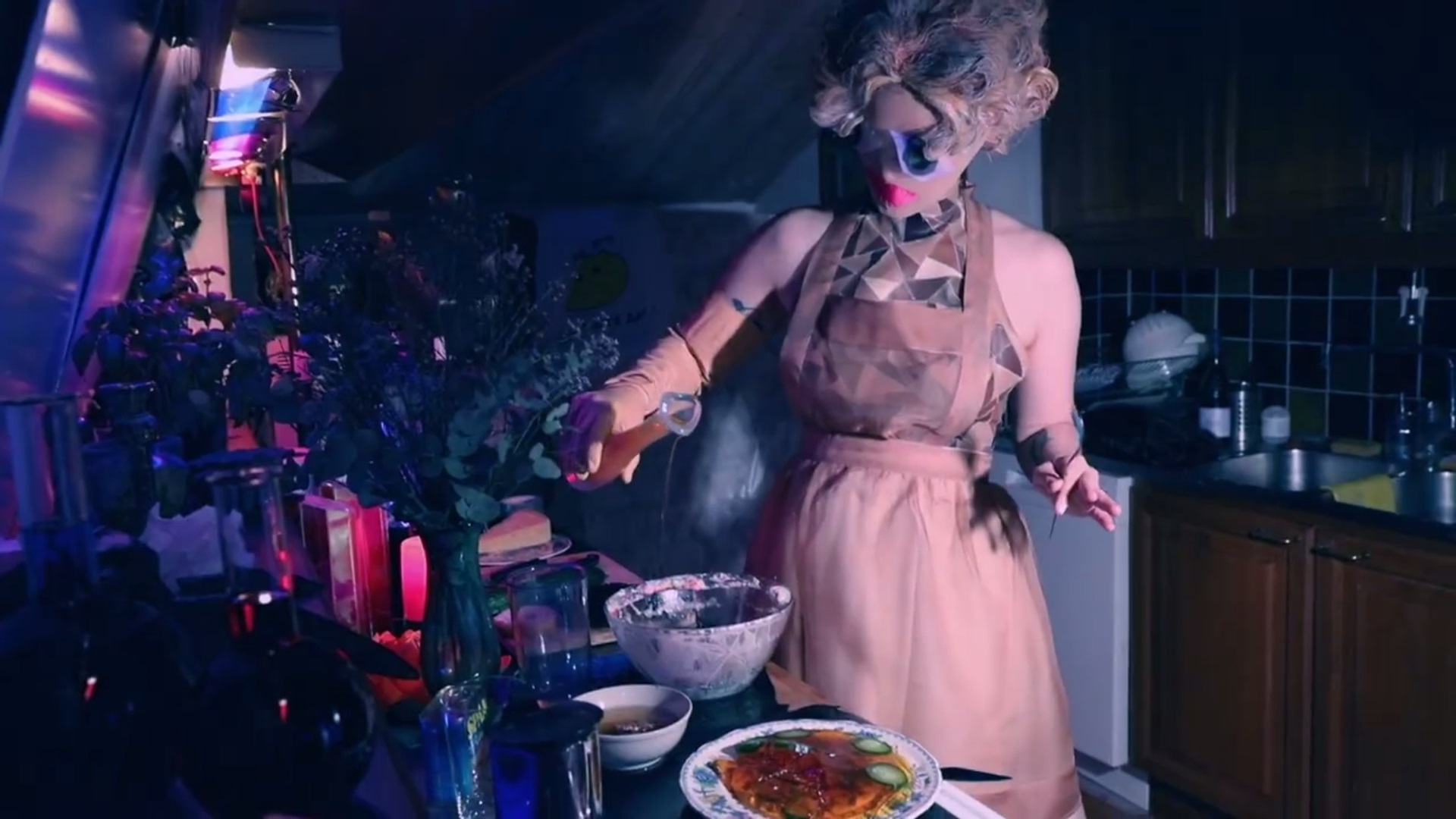 The first video (above) like some kind of demonic Food Network show, backed by Shaking The Habitual's "Networking". It's unclear exactly what's being concocted, but one of the ingredients is the creepy beak mask that's popped up a lot during the history of The Knife and Karin Dreijer's side gig Fever Ray.