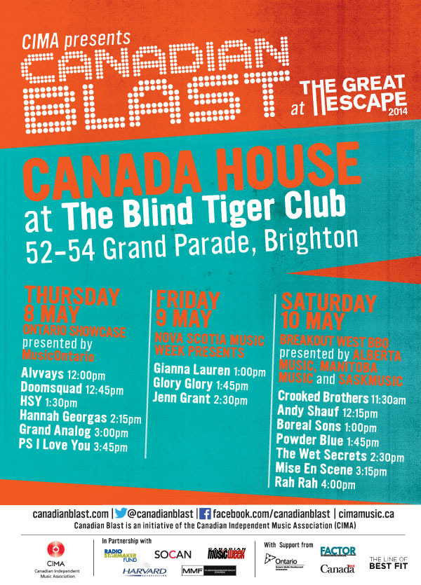 On Thursday, Friday and Saturday this week Canadian Blast will be turning The Blind Tiger Club in Brighton into Canada House, with three days of showcases at The Great Escape. Each day will be presented by a different Province or Provinces, with 16 acts playing over the three days. Over the next few days we will be introducing you to all of the artists performing, with show previews, introducing features and a special Canada House edition of our Oh! Canada series.
