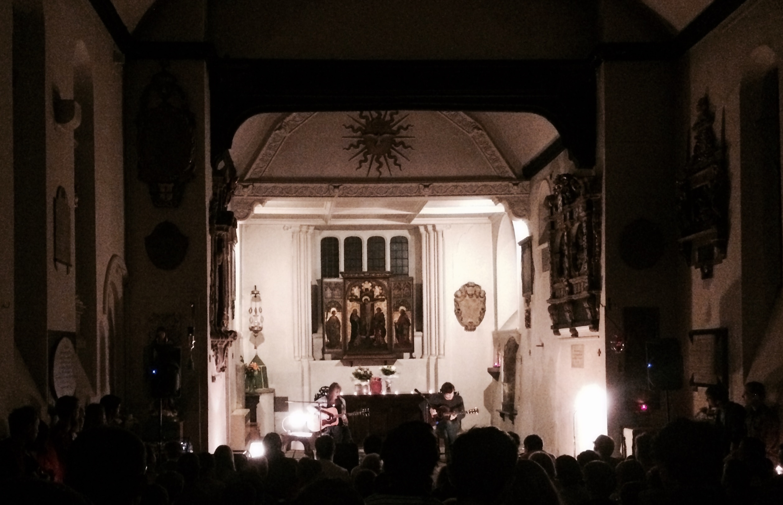 Bunyan’s fragile voice is inflected with a slight quaver nowadays but it’s otherwise pitch-perfect. Songs like “Rose Hip November” (a personal favourite) sound much as they always did, albeit stripped down to two acoustic guitars (Bunyan is accompanied on stage by long-time collaborator Gareth Dickson). Occasionally the absence of embellishment is more keenly felt (especially on the more sonically adventurous Heartleap tracks) but the church’s intimate environs lend themselves well to the instrumental simplicity.