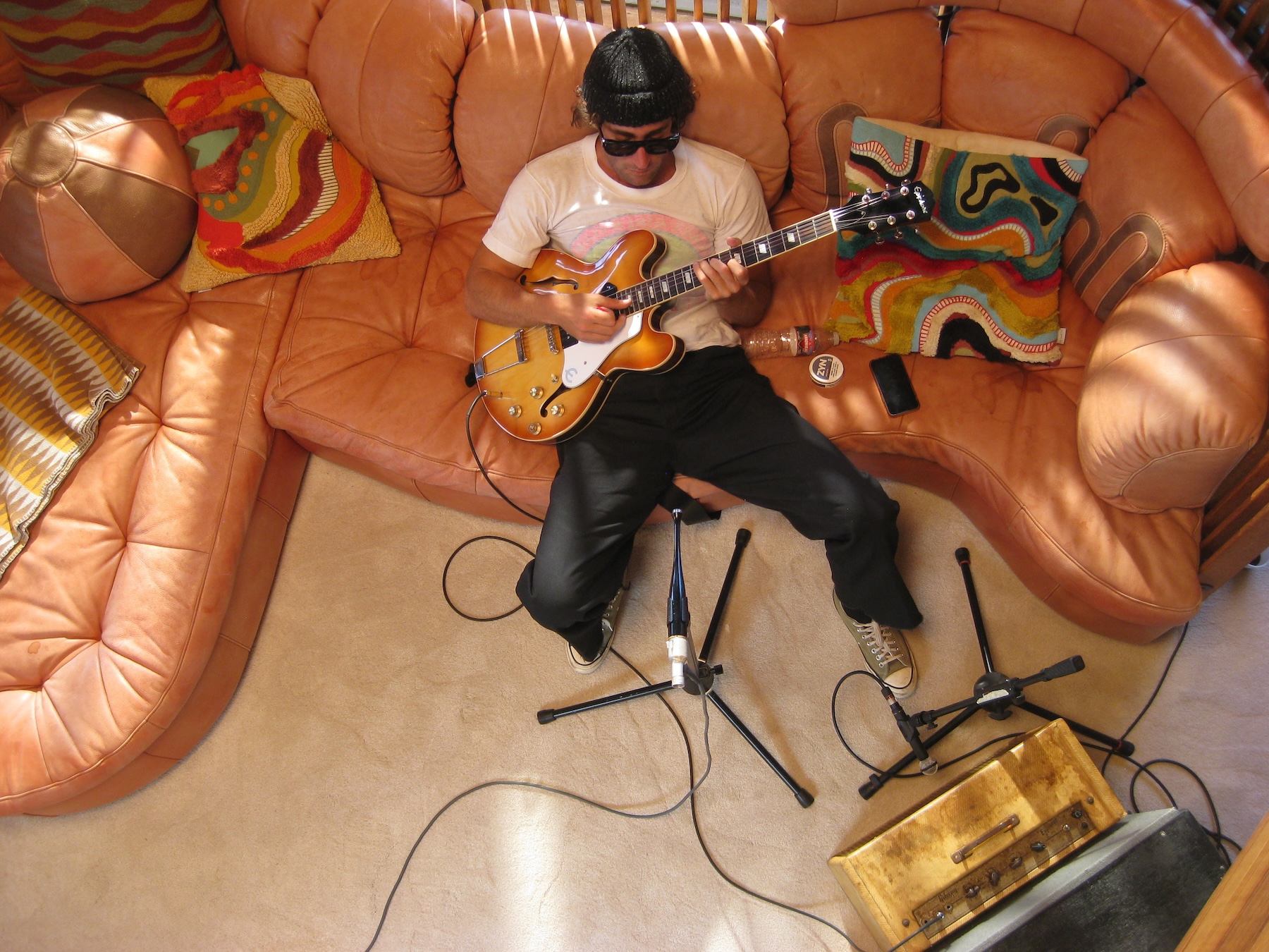 If you were to compile the collaborations Hether has lent his hand to, you'd have a veritable yellow phone book to flick through: Clairo, Remi Wolf, Paul McCartney, Anderson .Paak, Benny Blanco, Britney Spears, Justin Bieber, Kali Uchis, Kenny Beats, and Mac Miller, the list goes on. Particularly notable is his long-term partnership with Dominic Fike, having opened for Fike's US tour in 2023 and still playing alongside him this summer.